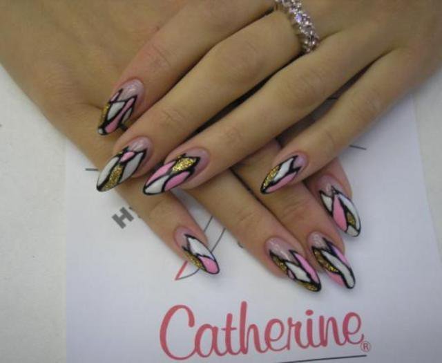 Materiál Catherine, ručně malovaný nail art.