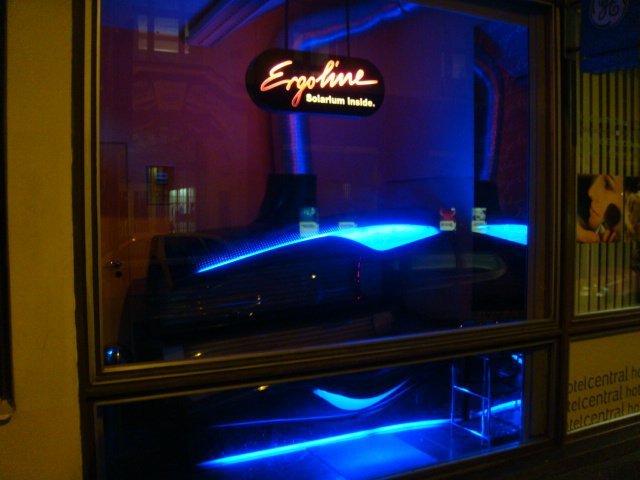 Provozujeme nejmodernější vertikální i horizontální solária Ergoline, aqua aroma (vodní mlha a relax program), inteligentní hlasové navádění, klimatizace atd. Prostory provozovny jsou také klimatizovány. Velký výběr solární kosmetiky, poradenství.